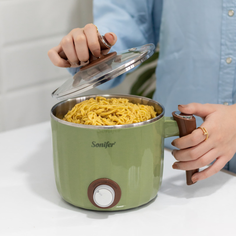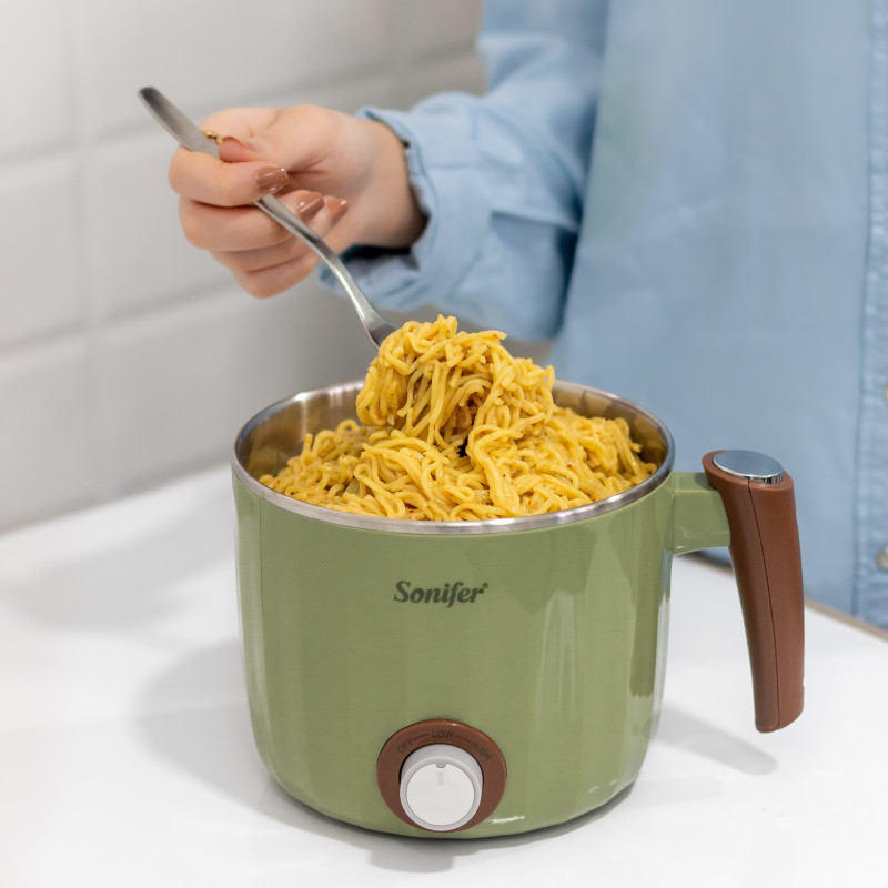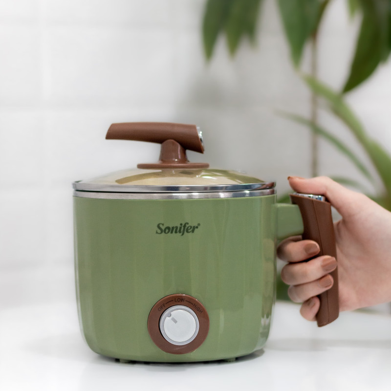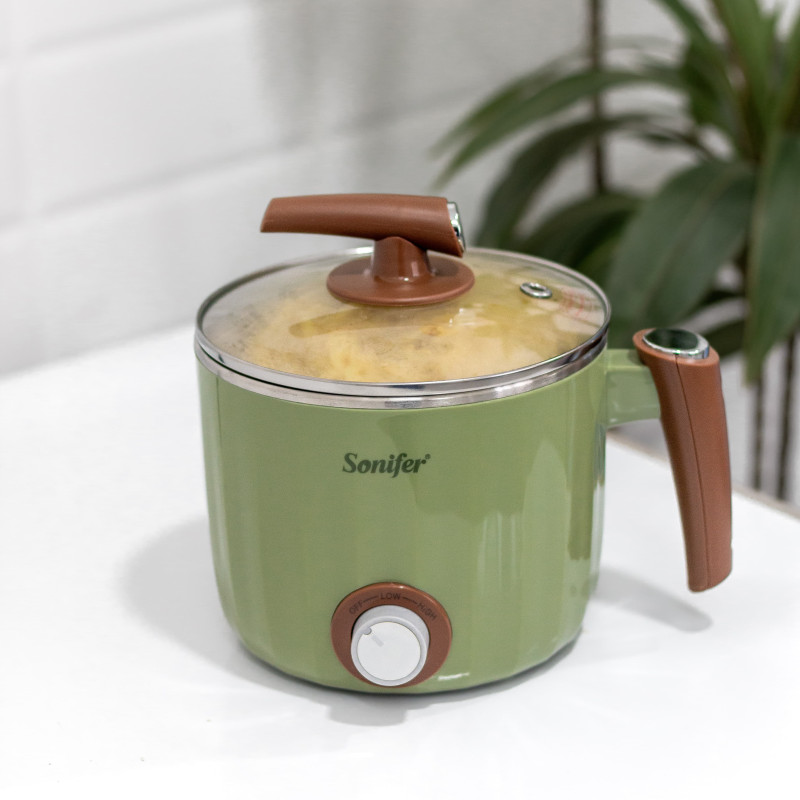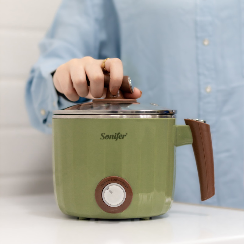| الوصف ومبدأ العمل | يمكنك جهاز الطهي الكهربائي من طهي طعامك في أي مكان حتى في غرفة المعيشة ويمكن وضعه في اي مكان لانه مزود بعازل حراري من الخارج كما انك يمكنك التحكم ب درجتين من مستويات الحرارة ،صُنع الجهاز بأعلى دقة وجودة وبمواد اوليه عالية الجودة مثل الستاينلس ستيل والزجاج والمواد العازلة |
